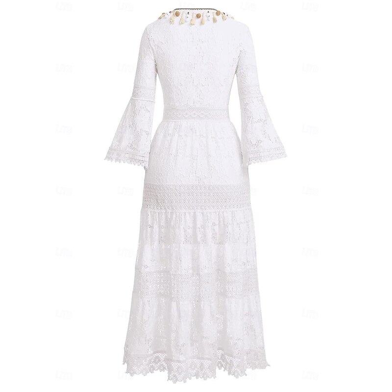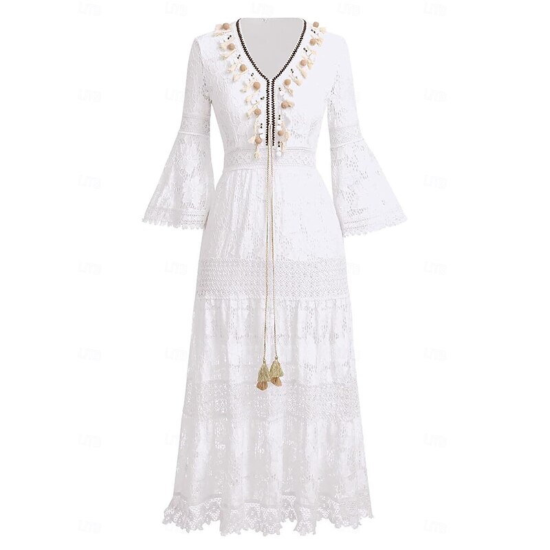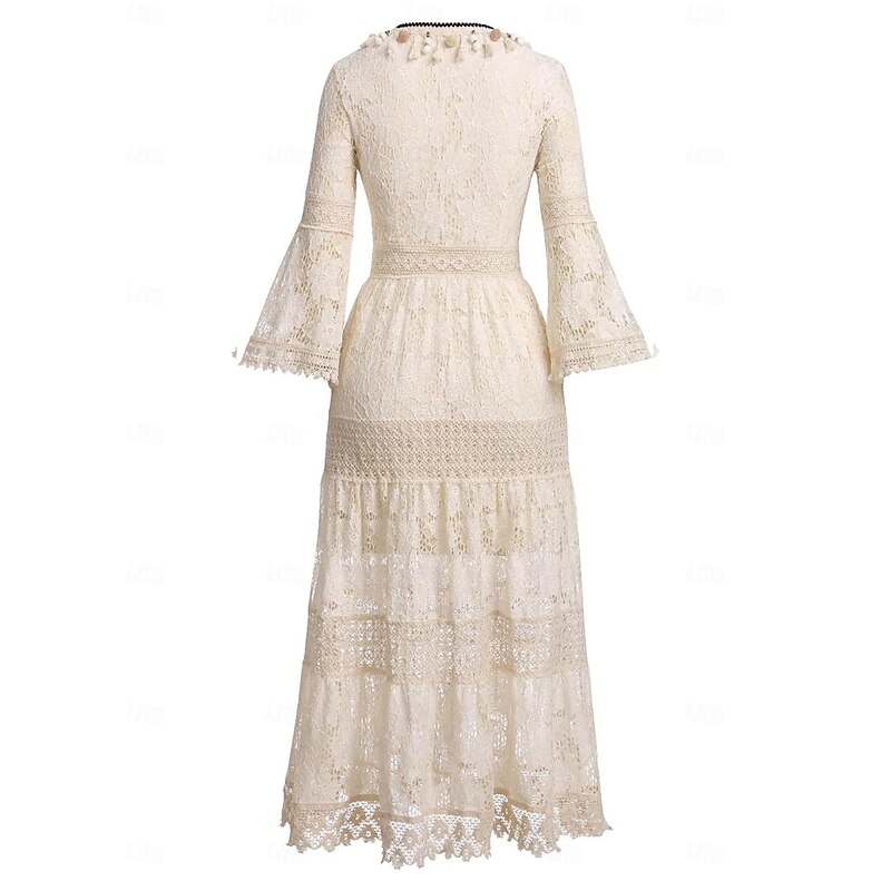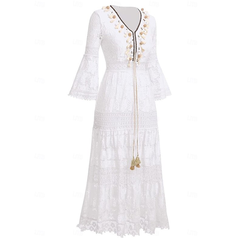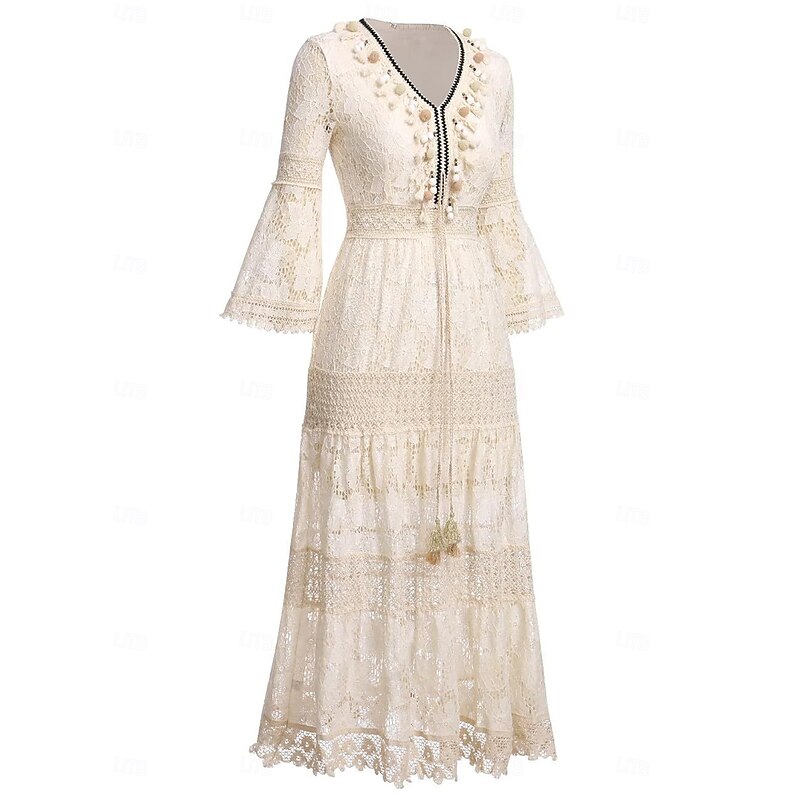More information about Women's Maxi Dress Sundress A Line Dress Vacation Party Birthday Party Going out Beach Solid Color 3/4 Length Sleeve V Neck White Apricot
