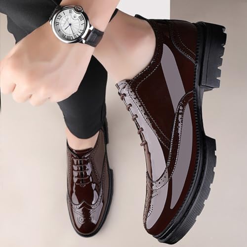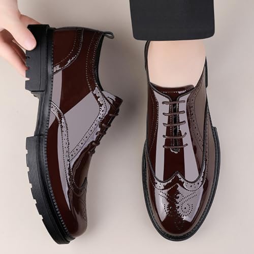 Men's Patent Leather Wing Tips Carved Lug Brogue Oxfords Shoes Fashion Classic Round-Toe Lace Up Low Top Genuine Leather Dress Shoes Hand Stitched Business Formal Derby Shoes 6