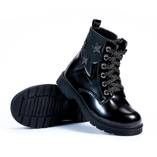 TZJS Girls Ankle Boots Girls' Lace Up Outdoor Combat Boot Kids Lightweight Hiking Shoes with Side Zipper for Toddler/Little Kid 1