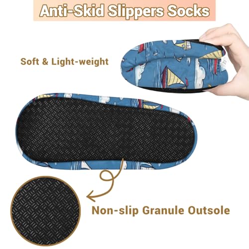 HOT ! Lighthouse Sailboat Women's Slippers Socks Cozy Fuzzy Sherpa House Shoes Winter House Bedroom Slippers