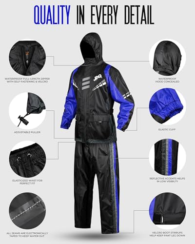 More information about J.A.G. Motorcycle Rain Suit for Men & Women - 2 Pieces Waterproof Rain Jacket & Pants | Reflective Rain Coat with Hoodie