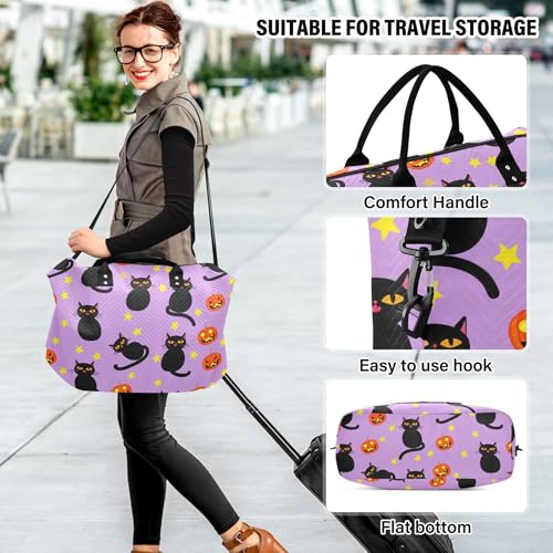 HOT ! Burbuja Travel Duffel Bag for Women, Pumpkins Black Cats Weekender Overnight Bag Shoulder Carry On Tote with Trolley Sleeve, Gym & Toiletry, Large Size