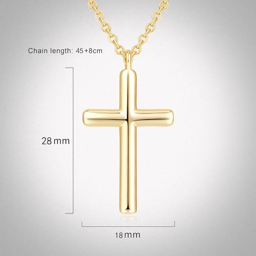• CROSS NECKLACE SIZE:Cross size: 28*18mm. Chain length: 45+8cm. Strong and smooth edge gold cross necklace for women with flexible lobster clasp.