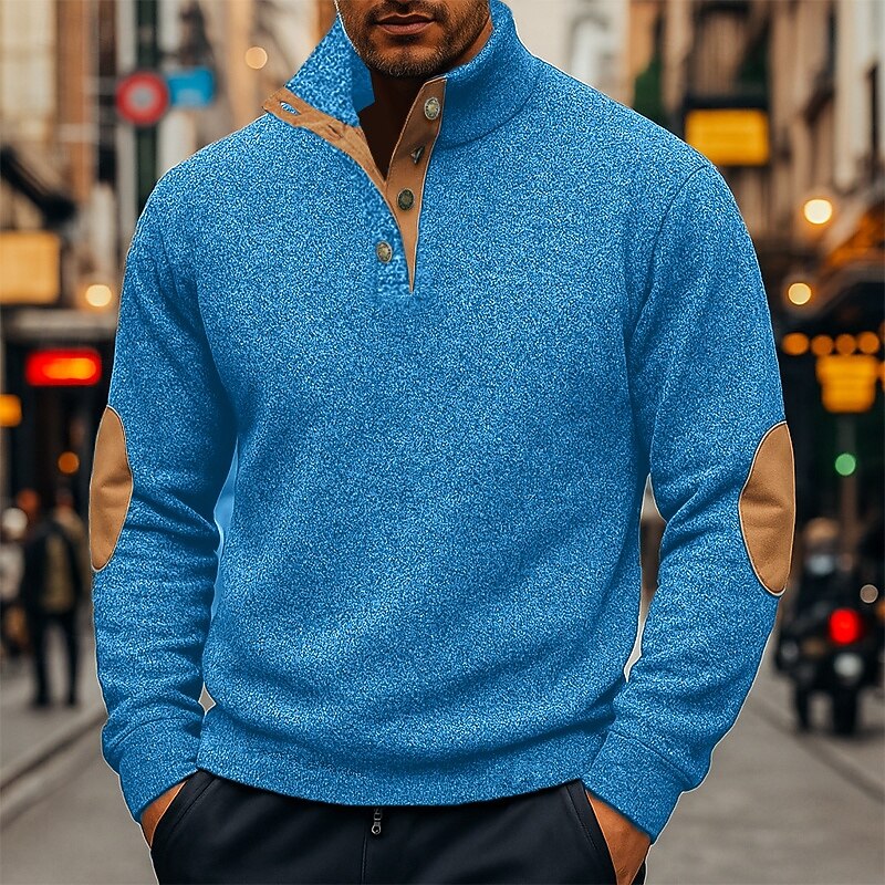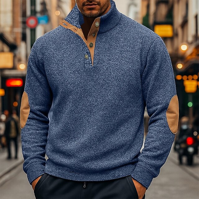 More information about Men's Sweatshirt Pullover Hoodie Sweatshirt Pullover Button Up Hoodie Wine Red Black Navy Blue Green Gray Standing Collar Plain Patchwork Sports & Outdoor Casual Daily Streetwear Cool Sportswear