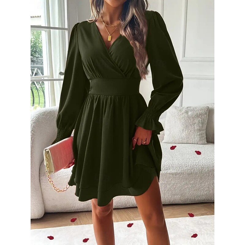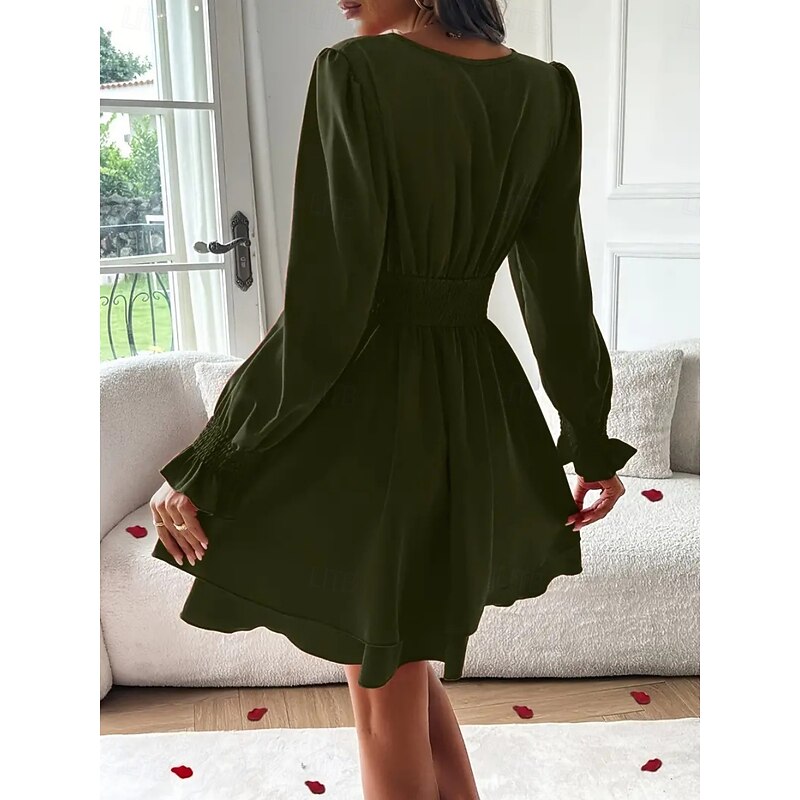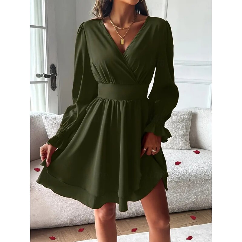 Women's Mini Dress Casual Dress A Line Dress Stylish Casual Vacation Daily Regular Fit Plain Long Sleeve V Neck Black Red Summer Spring 12