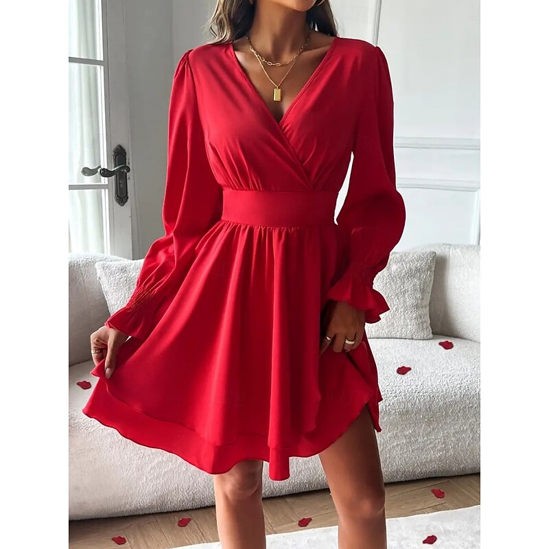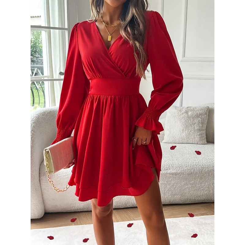 More information about Women's Mini Dress Casual Dress A Line Dress Stylish Casual Vacation Daily Regular Fit Plain Long Sleeve V Neck Black Red Summer Spring