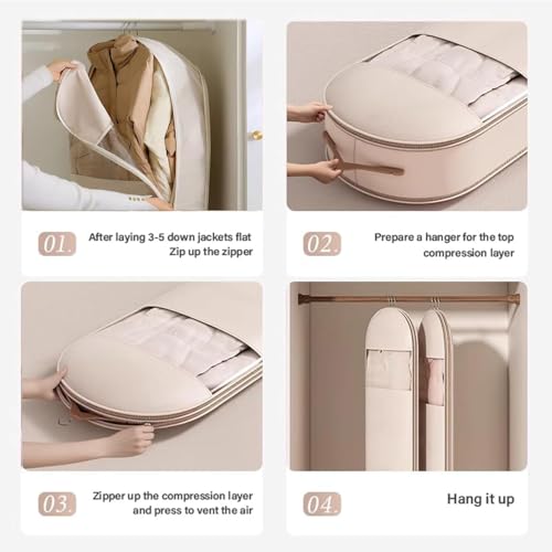 • 【Quick Compression, No Tools Needed】: Just zip up the bag, then compress with the outer zipper—no vacuum required. Effortless, fast, and ideal for everyday or seasonal storage