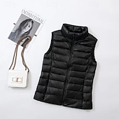 More information about Women's Vest Warm Comfortable Zipper Casual Plain Holiday Daily Wear Zipper Regular Stand Collar Regular Fit Sleeveless Outerwear Light Pink Black Red Fall Winter