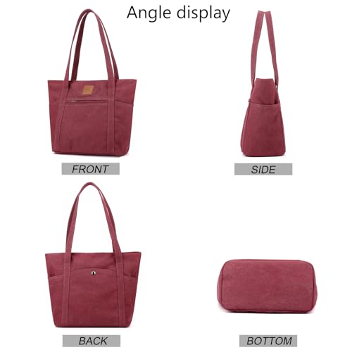 ArcEnCiel Canvas Multi-pocket Womens Shoulder Handbag With Zipper,For Large Capacity Purse Bags Handbag 4