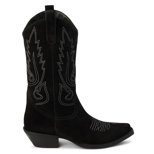 HOT ! Coconuts by Matisse Womens Gaucho Embroidered Snip Toe Casual Boots Mid Calf Low Heel 1-2" - Black