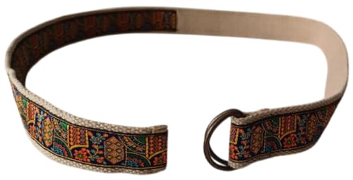 • KVR Fashion Unisex Embroidery jacquard design waist vintage wide designer multicolored Belt for Jeans Shorts Trousers with Double D-Ring Buckles