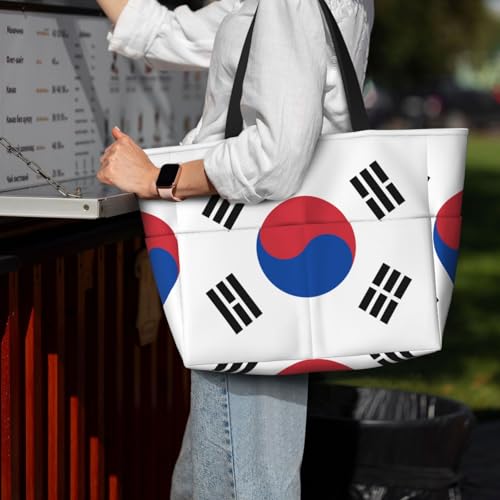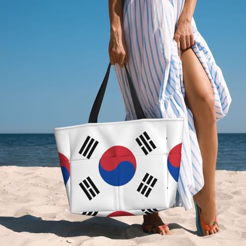 HOT ! Flag of Republic of Korea Print 28L Beach Tote Bag, Water-resistant Travel Tote, Lightweight Gym & Camping Carryall