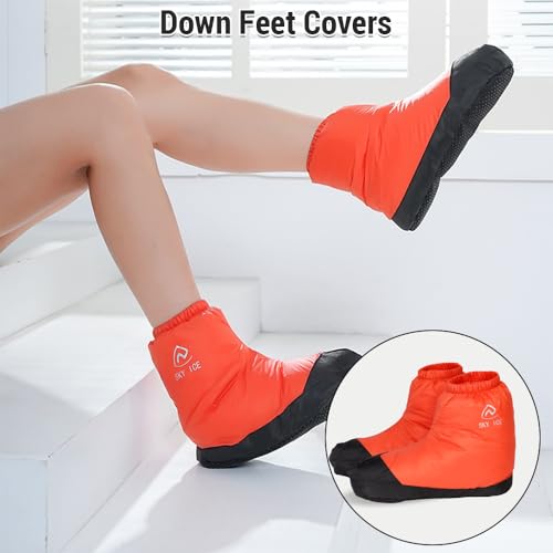 HOT ! Watertight Down Slipper Boots – Lightweight Down Socks with Anti Slip Soles, 90% White Duck Down Fill, Elastic Cuffs for Indoor & Outdoor Use