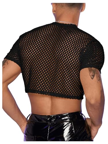 More information about WDIRARA Men's Fishnet Mesh Tee Shirt Round Neck Short Sleeve Crop Top