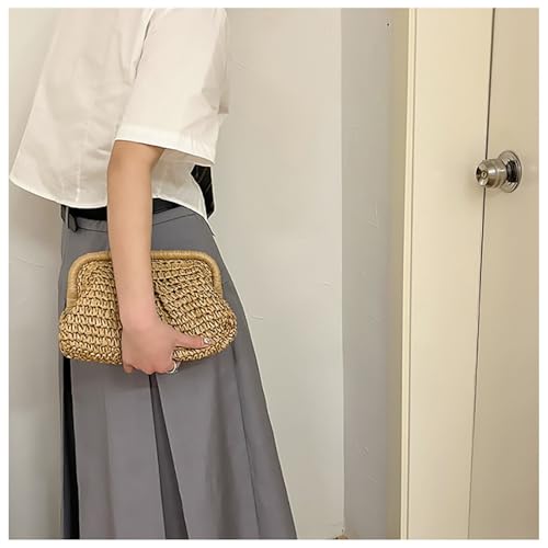 trending ! Straw Crossbody for Women,Straw Clutch Purse,Cloud Dumpling Woven Pouch Shoulder Handbag Travel Beach Woven Bag