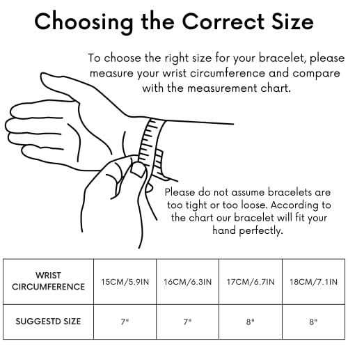 • Bracelet Dimension: Bracelet size 7inch with 5.8cm/2.3inch inner diameter, 18cm/7.1inch circumference. It fits 15cm/5.9inch, 16cm/6.3inch wrist, please measure your wrist according to our size chart before purchasing.