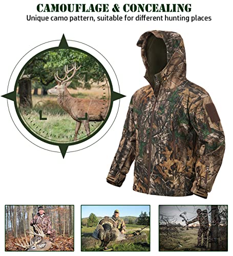 More information about NAVEKULL Silent Hunting Clothes for Men Soft Shell Outdoor Hiking Jacket Camo Water Resistant Fleece Hooded Coat with Pockets