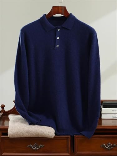 Men's Cashmere Polo Long Sleeve Pullover Sweater Fall Winter Casual Comfortable Warm Versatile Office Wear Knitwear Top 5