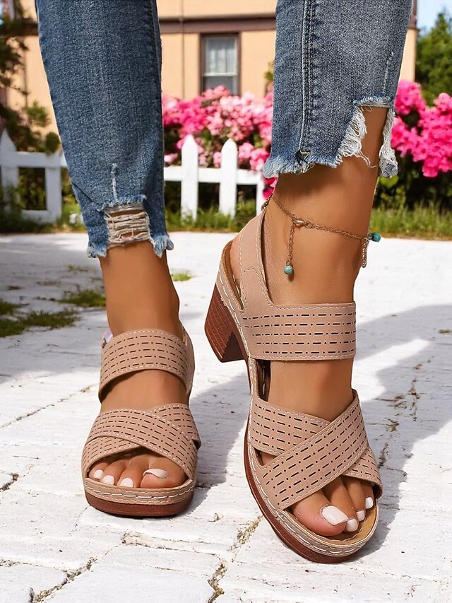 Women's Cut-Out Chunky Heel Sandals with Adjustable Strap – Comfortable and Stylish Shoes for Casual Summer Wear and Outdoor Events 8