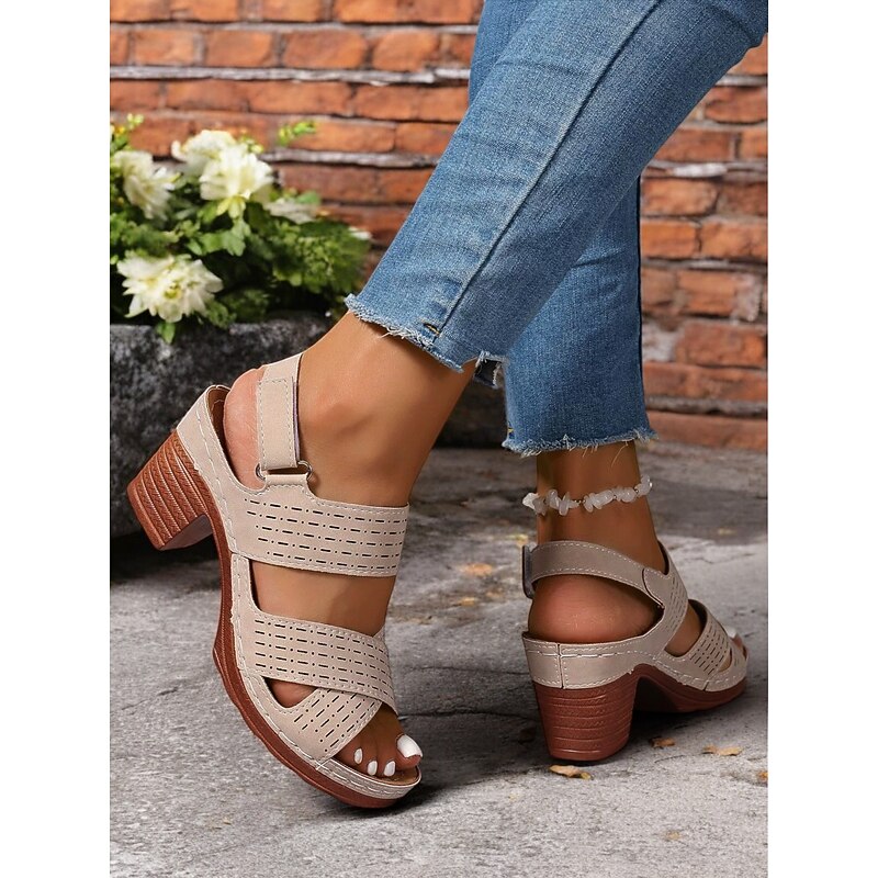 HOT ! Women's Cut-Out Chunky Heel Sandals with Adjustable Strap – Comfortable and Stylish Shoes for Casual Summer Wear and Outdoor Events