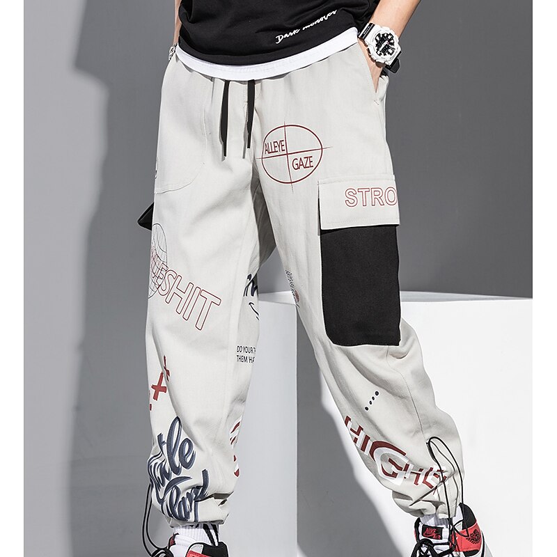 More information about Men's Cargo Pants Cargo Trousers Joggers Trousers Drawstring Elastic Waist Multi Pocket Graphic Prints Breathable Soft Casual Daily Fashion Streetwear Black Gray