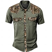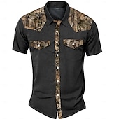 Men's Camouflage Western Shirt Short Sleeve Western Sports Outdoor Summer Turndown Button Up 2 Pockets Black Green Beige 5