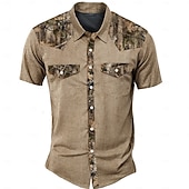 More information about Men's Camouflage Western Shirt Short Sleeve Western Sports Outdoor Summer Turndown Button Up 2 Pockets Black Green Beige