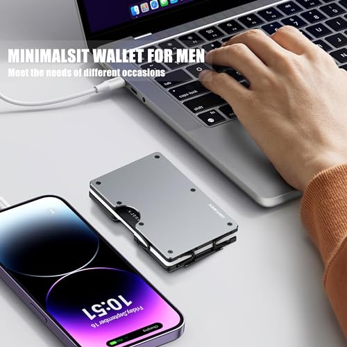 Wallet for Men, Minimalist Metal Wallets with Removable Money Clip, Slim Front Pocket Credit Card Holder, Aluminum RFID Blocking Card Case, Mens Travel Business Team Festival Gifts, Matte Gray 7