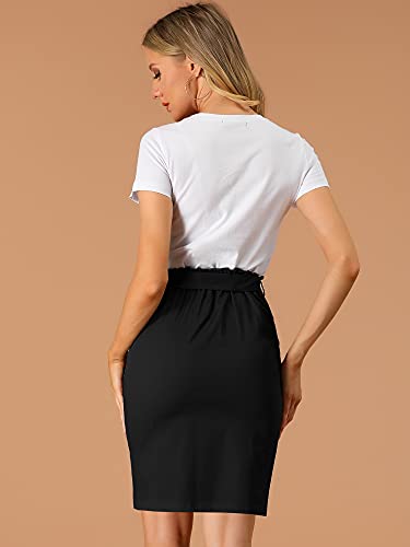 Allegra K Women's Workwear Paperbag Elastic Waist Side Pockets Cotton Pencil Skirt 1