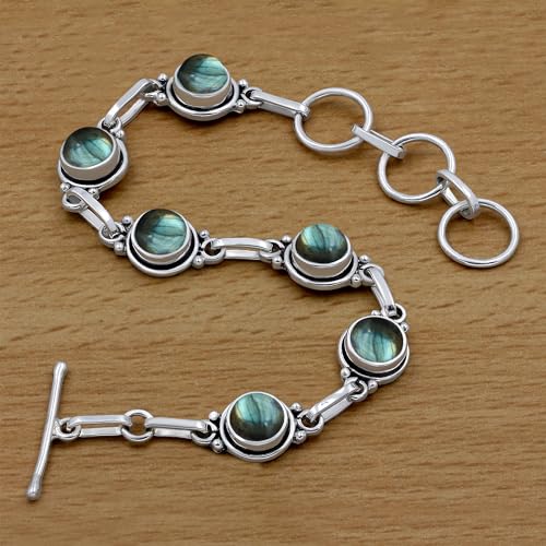 • Featured/Specifications Bracelet Size : Approx 7.5 Inch| Metal: Solid 925 Sterling Silver (925/1000) | Finish: High Polish | Stone: Natural Labradorite , | Stone Size: 7mm Round