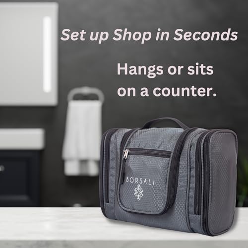 HOT ! BORSALI Hanging Toiletry Bag for Women with Mirror - Medium Travel Bag for Toiletries & Travel Essentials - Compact Yet Roomy - 22 Compartments & Mesh Back Pocket - Sturdy Swivel Hook