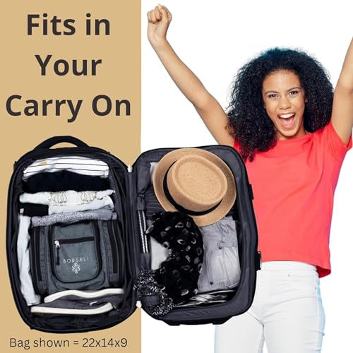 • Pack Effortlessly; This hanging toiletry bag is compact and roomy; packing for any trip will become a breeze; you will find that you are carrying around less weight; at eleven inches wide x eight inches tall x four inches deep when closed it even fits inside your wheeled carry-on