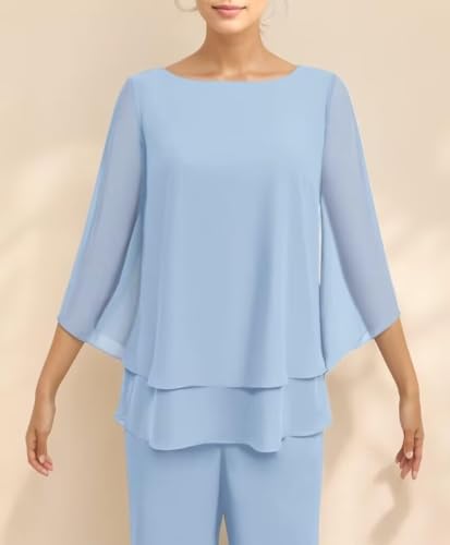 • 2 Piece Mother of The Bride Pant Suits for Wedding Guest Chiffon Long Sleeves Evening Outfits Formal for women dressy