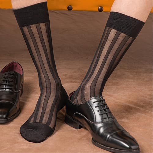 Mens Casual Business Dress Socks Middle Calf Wide Striped Sheer Nylon Stockings Formal Suit See Through Silk Socks 1