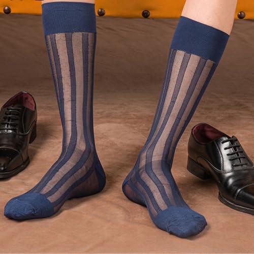 Mens Casual Business Dress Socks Middle Calf Wide Striped Sheer Nylon Stockings Formal Suit See Through Silk Socks 4