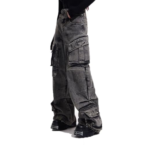 HOT ! 2025 Mens Jeans Wide Leg Baggy Loose Fit Y2K Grunge Denim Cargo Pants with Pockets