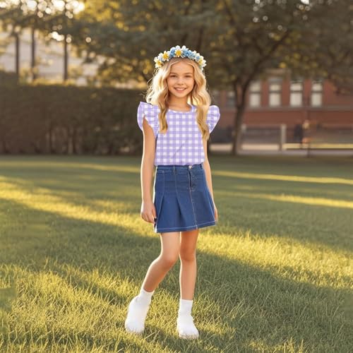 trending ! 3-15Y Toddler Baby Girls Cotton Ruffle Tops Sleeveless Swing Kids Plaid Casual Tees 2025 Trendy Cute Basic Blouses