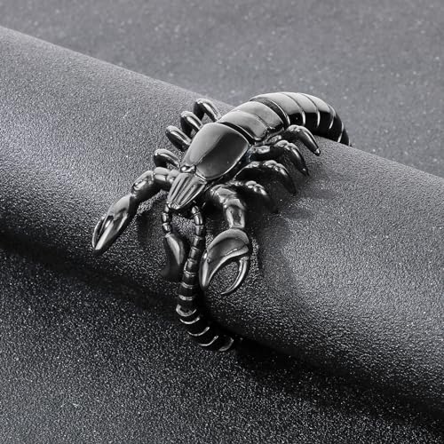 316L Stainless Steel Scorpion Centipede Mens Bracelet Bangle Vintage Punk Silver Black Bracelet for Men Polished Mens Jewelry Gift for Him 4