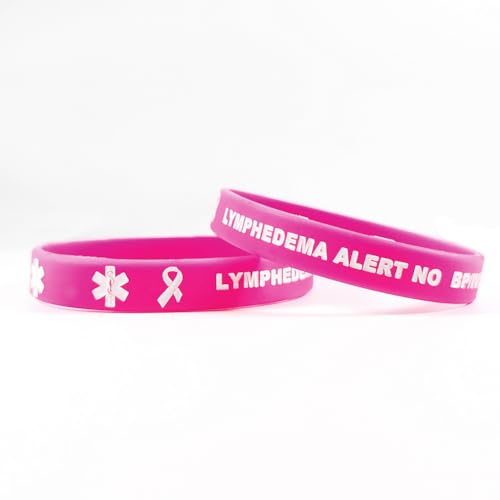 Lymphedema Alert Bracelet Breast Cancer Pink Ribbon no bp no Needles Lymphedema ID Rubber Wristbands Medical Alert Bracelets with Medical Wallet Insert Card 1