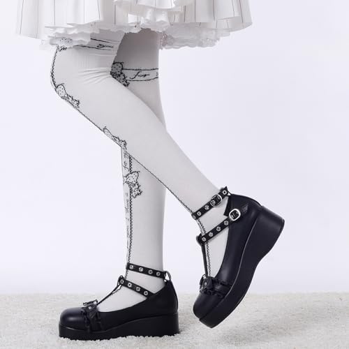 BYOMIGY Mary Jane Shoes Women Goth Platform Heels Chunky Heel Pumps with Ankle Strap Wedge Heels for Women