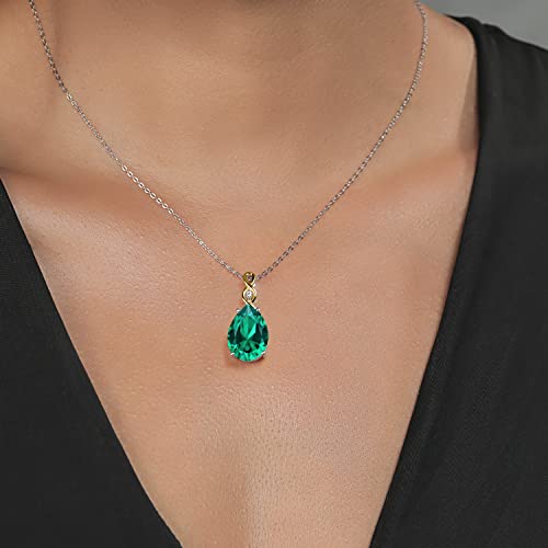 HOT ! Gem Stone King Teardrop Necklace For Women | 925 Sterling Silver and 10K Yellow Gold | Gemstone Birthstone and White Lab Grown Diamond | Design By Keren Hanan | With 18 Inch Chain