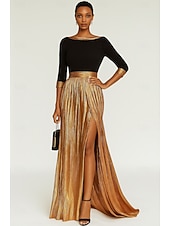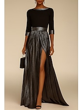 $154.99 - Black Gold A-Line Evening Gown Elegant Dress Formal Wedding Floor Length Long Sleeve Boat Neck Champagne Mother Of the Bride Dress Stretch Satin with Pleats 2025 2025. Shop for cheap Sheath Evening Dresses online? Buy at lightinthebox.com on sale today!