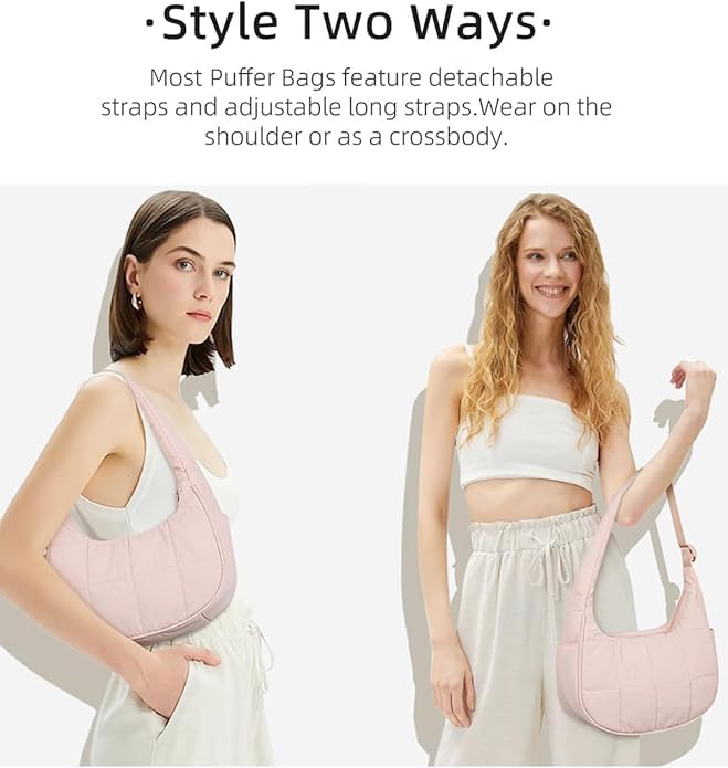 Purse, Nylon Quilted Shoulder Hobo Purses, Cute Waterproof Puffer Crescent Bag, Adjustable Shoulder Strap