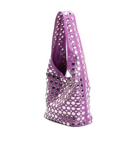 HOT ! Stylish Studded Hobo Bag Y2K Rivets Bucket Purse for Women Trendy Small Shoulder Tote Handbag