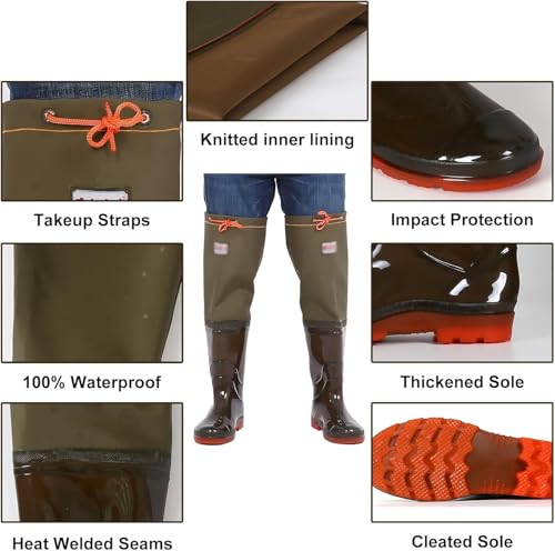 Outdoor Hip Waders for Men Women, Waterproof Insulated Fishing BootfootWader, Wading Boots with Cleated Outsole (9.5) 4