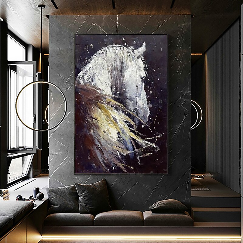 Animal Oil Painting Black and White Horse Wall Art Canvas Decoration Modern  for Home Decor Rolled Frameless Unstretched Painting 6