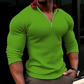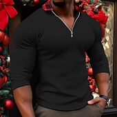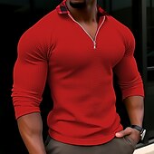 More information about Men's Waffle Tee T Shirt Waffle Henley Shirt Tee Top Long Sleeve V Neck Lapel Spring & Fall Plain Fashion Designer Basic Print Vacation Street Going out Black White Red Top Tee for Men