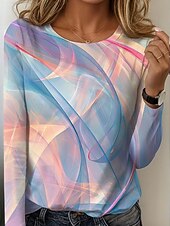 Women's T shirt Crew Neck Long Sleeve Tunic Graphic Geometric Striped Vintage Stylish  Regular Tops Daily Print Purple Orange Green Spring Fall 7