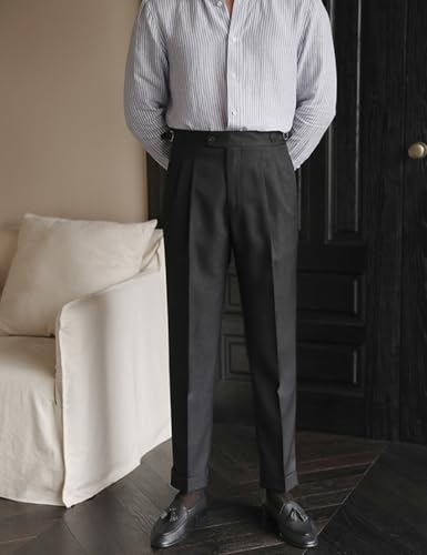 Men’s Naples Pants Slim Fit Flat Front Casual Business Trousers Classic Gurkha Dress Pants 6