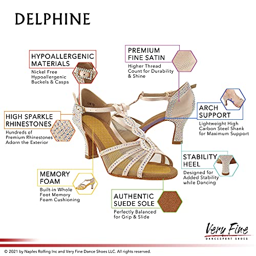 • Look your best, feel your best, be your best with the Very Fine Delphine Dance Shoes. Glide through the night with these beautiful and comfortable crystal-studded Ballroom Dance Shoes. Great for Salsa, Tango, Latin, Waltz, and much more.